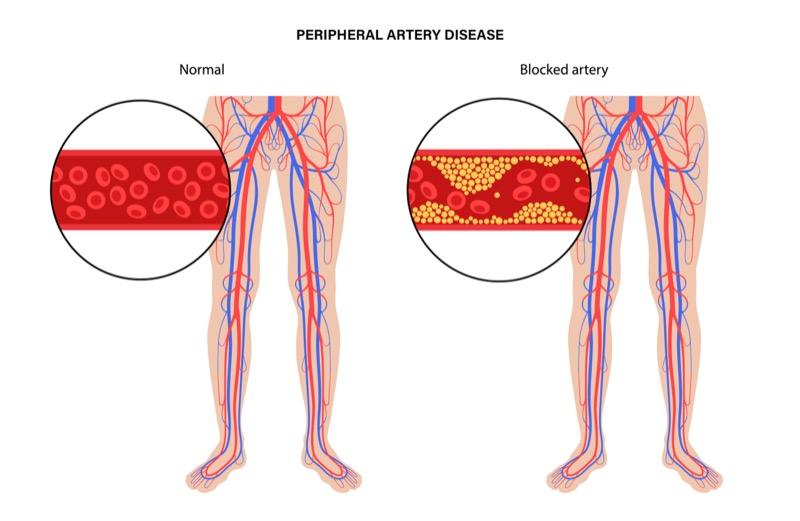 Peripheral artery disease (PAD) is a condition characterized by narrowed arteries which reduce blood flow to the limbs.